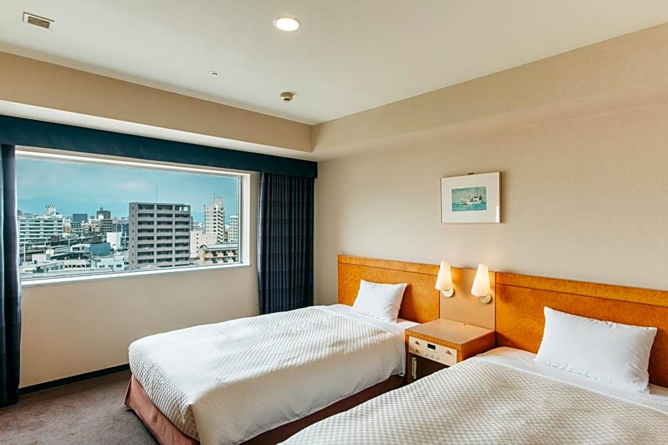 The twin room includes a private bathroom, well-fitted with a bath, a shower, a bidet, a hairdryer and slippers. This twin room is air-conditioned and features a flat-screen TV with satellite channels, a safe deposit box, an electric kettle and a carpeted floor. The unit offers 2 beds.